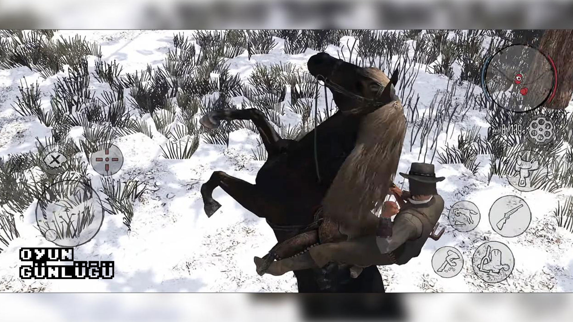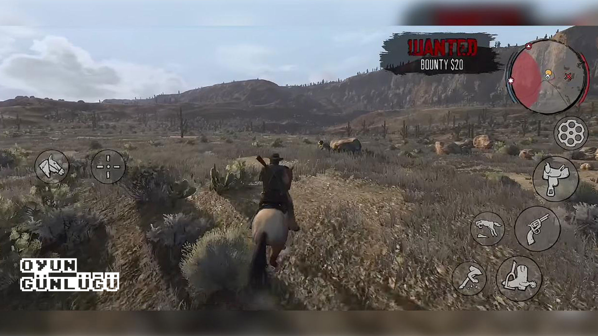 Oyunu üçüncü şahıs perspektiften oynanıyor. Nişancılık mekanikleri siper tabanlı, yani GTA serisine benzer bir sistem var. İki farklı kontrol seçeneği mevcut: dokunmatik ve gamepad.Dokunmatik kontrollerde ekranın sağ tarafında nişan alma ve ateş butonları, sol tarafta hareket kontrolü var. Rockstar butonları bağlama duyarlı yapmış, yani sadece ihtiyaç duyduğunuzda ekranda beliriyor. Örneğin bir atın yanına yaklaşınca "biniş" butonu çıkıyor, bir NPC ile konuşma mesafesine gelince "selamlaşma" seçenekleri açılıyor. Bu aslında akıllıca bir çözüm, çünkü ekranı gereksiz yere şişirmiyor. Ama açıkçası dokunmatik kontrollerle oynamak beni zorladı. Özellikle çatışmalardaki hassas nişan alma anlarında parmağım ekranın yarısını kapatıyor, düşmanları görmem güçleşiyor.