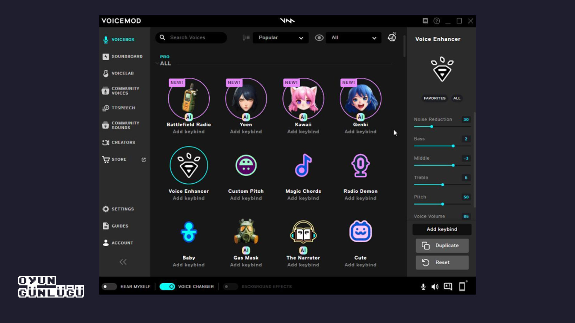Popüler bir Xbox (PC üzerinden) gerçek zamanlı ses değiştirme uygulaması olan Voicemod, geniş bir ses kütüphanesi ve topluluk özelliklerini içeriyor. Birçok uygulama basit filtreler sunarken, Voicemod yapay zeka destekli konuşma dönüştürme özelliği kullanarak ses tonunu ve duyguyu tamamen koruyarak sesinizi değiştiriyor.
