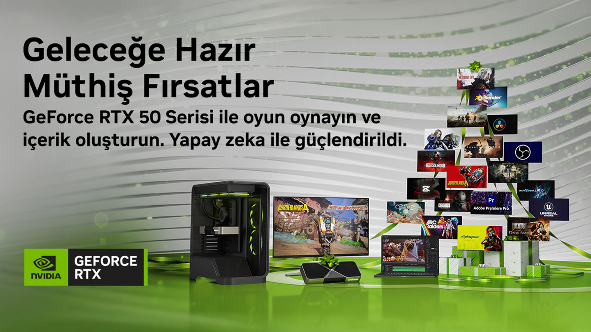 Oyuncudan, içerik üreticisine ve hatta günlük kullanıcıya kadar, RTX 50 Serisi, Nvidia'nın bugüne kadarki en akıllı ve en hızlı ürün serisidir. Yıl sonu fırsatları ile yeni nesil güce geçiş yapın ve RTX ON ile performansı kendiniz deneyimleyin.