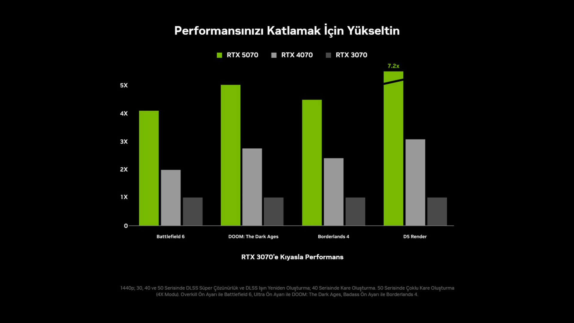 Yeni Nvidia GeForce RTX 50 Serisi, sadece hızlı değil, aynı zamanda daha akıllıdır. Oyunların çalışma şeklini kökten değiştirir.DLSS 4 ve Görüntü Kalitesi: Yapay zekâ destekli DLSS 4 ve Çoklu Kare Oluşturma (Multi Frame Generation) teknolojisi ile FPS'nizi 3,8 kata kadar yükseltebilirsiniz. Bu sayede, oyun içi ayarları değiştirmeden bile daha fazla kare hızı ve daha akıcı bir hareket elde edersiniz.
