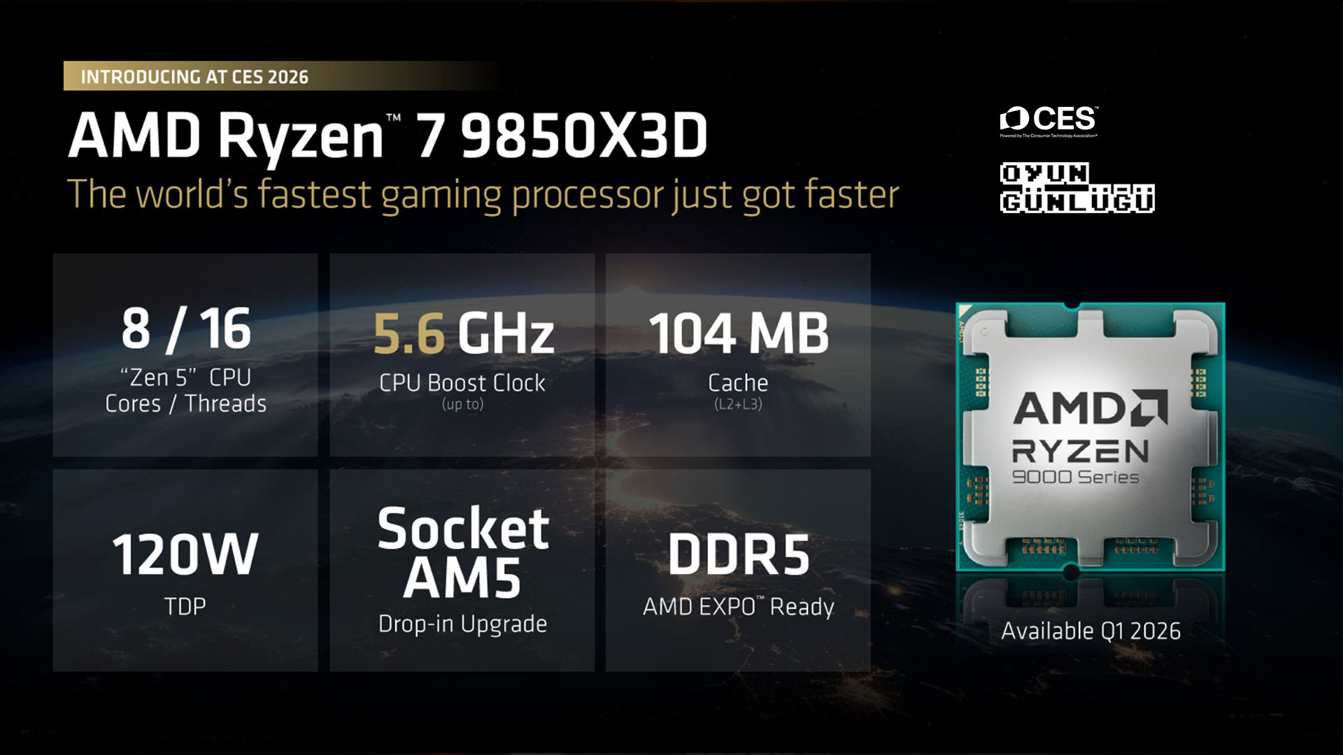 Ryzen 7 9850X3D’nin 2026’nın ilk çeyreğinde piyasaya çıkması planlanıyor. CES 2026'daki tüm AMD duyuruları için bu sayfaya göz atabilirsiniz.