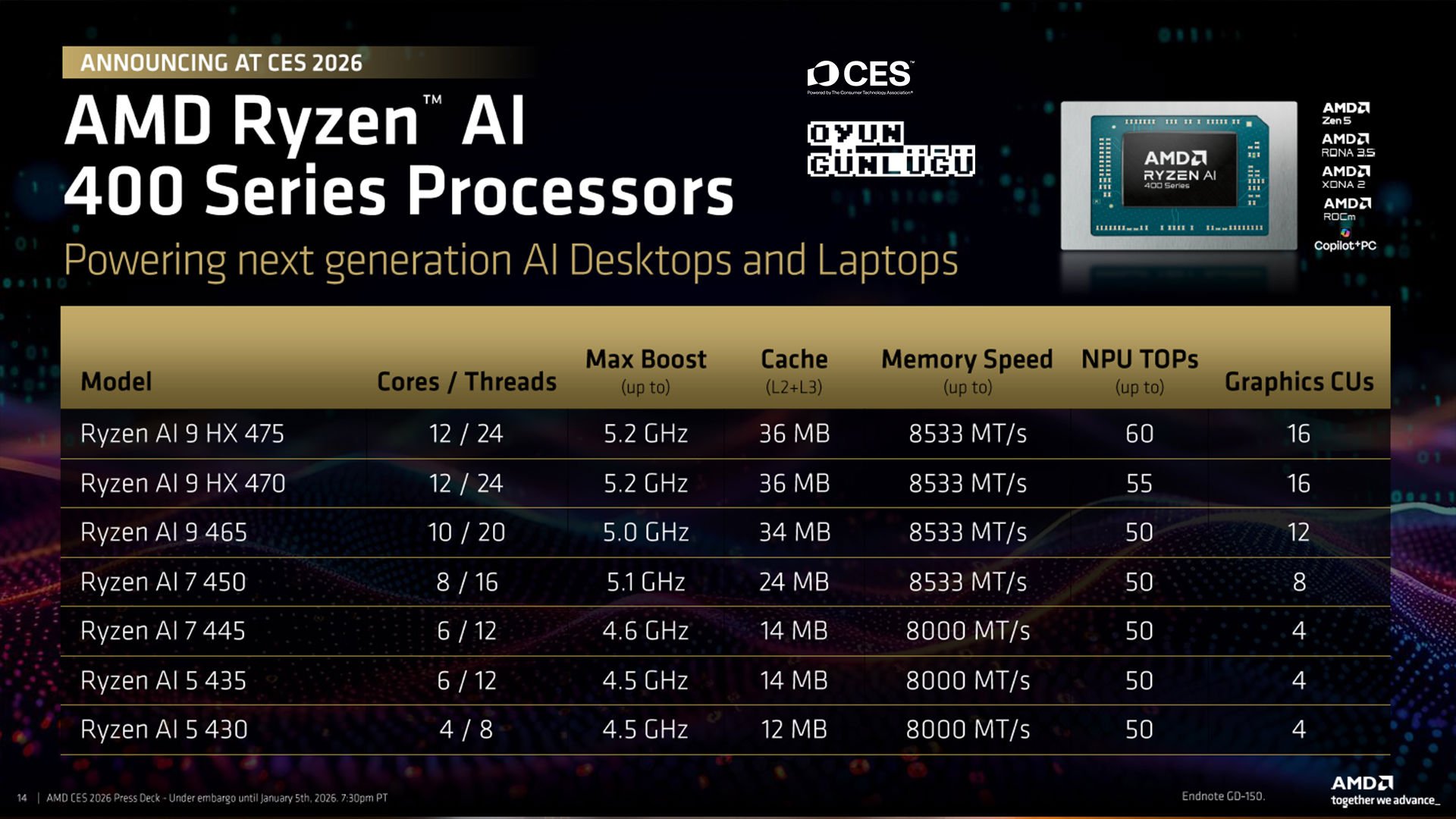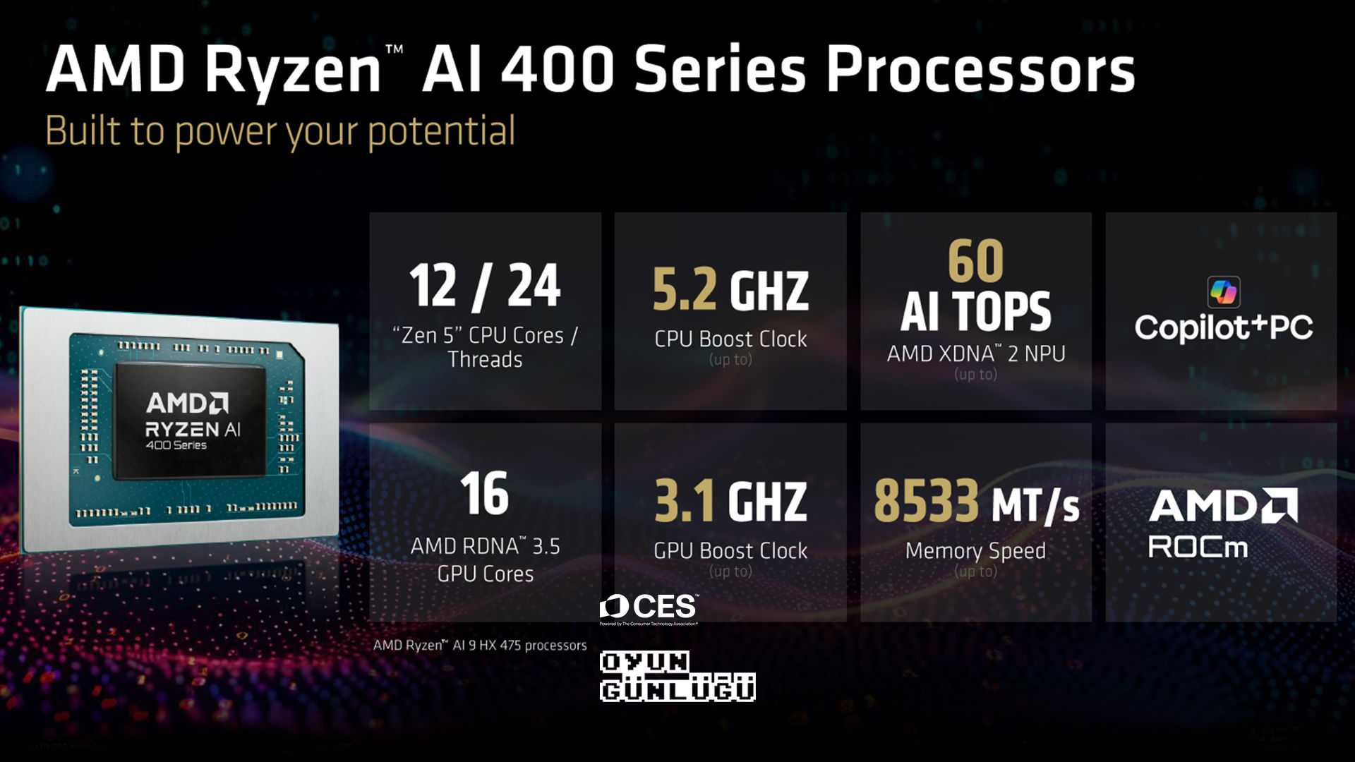 AMD, Ryzen AI 400 Serisi’nin özellikle; e-spor oyuncuları, mobil oyuncular, bulut oyun kullanıcıları için ideal bir platform sunduğunu vurguluyor.
