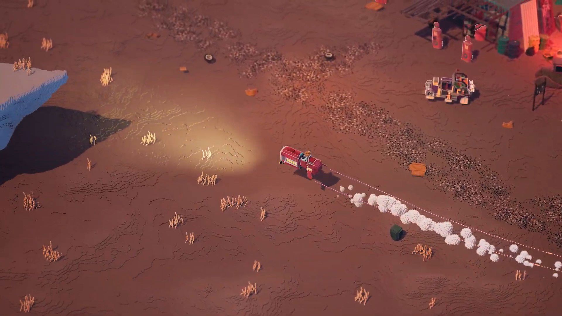 Erosion, voxel temelli görsel tarzını vahşi batı esintileri ve neon tonlarla birleştiriyor. Yıkılabilir çevre, hem keşif hem çatışma sırasında oyunun görsel bütünlüğünü etkileyen önemli bir unsur olarak öne çıkıyor.