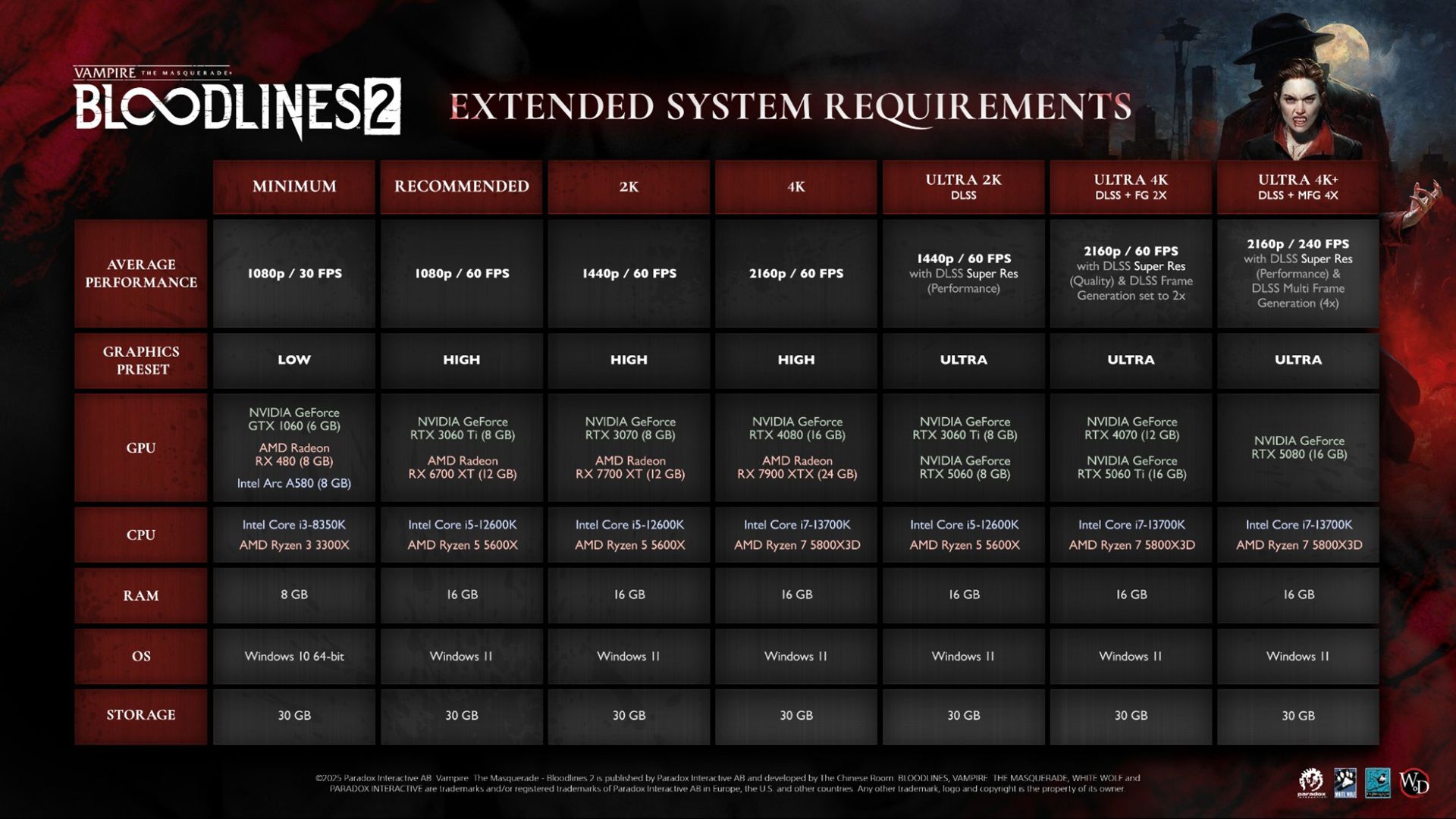 Vampire: The Masquerade – Bloodlines 2 önerilen sistem gereksinimleri