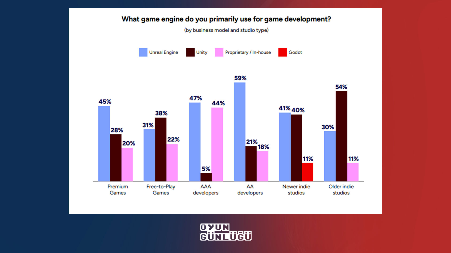 Bu, raporun vurgusuna göre “ilk kez” belirgin bir farkın görüldüğü tablo: Önceki iki ankette iki motorun “başabaş” gittiği belirtiliyor. Ancak rapor, bu farkın gerçek bir pazar kayması mı yoksa sorunun bu yıl daha “konsantre” bir geliştirici grubuna yöneltilmesinin sonucu mu olduğunun net olmadığını da not düşüyor.