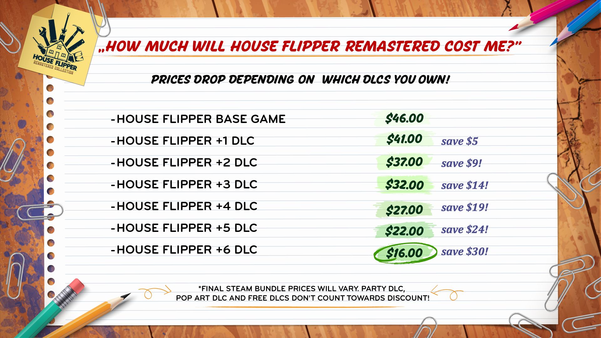 Ama hepsi bu kadar değil; Frozen Way stüdyosunun House Flipper Remastered Collection için hazırladığı playtest süreci de Steam House and Home Fest 2026 kapsamında şu anda aktif durumda. Oyuncular, Steam üzerinden bu playtestlere katılabiliyor.Remastered Collection’da, House Flipper 1 ve tüm DLC’lerin önemli ölçüde geliştirilmiş versiyonları yer alıyor. Bu paket, hem orijinal oyun deneyimini hem de yeni işler, yüzlerce yeni eşya ve ek bonus içerikleri kapsıyor. House Flipper Remastered Collection’ın temel satış fiyatı 49.99 USD olarak açıklandı. Karşılaştırma yapıldığında, orijinal oyun ve tüm DLC’lerin tam fiyatla satın alınması yaklaşık 120 USD’ye denk geliyor. Ayrıca geliştirici ekip, sadık topluluğu ödüllendirmeyi de hedefliyor. Oyuncunun Steam kütüphanesinde orijinal oyuna ait “büyük” DLC’lerden (Garden, HGTV, Luxury, Pets, Farm, Dine Out) kaç tanesinin bulunduğuna bağlı olarak fiyat otomatik şekilde düşüyor.