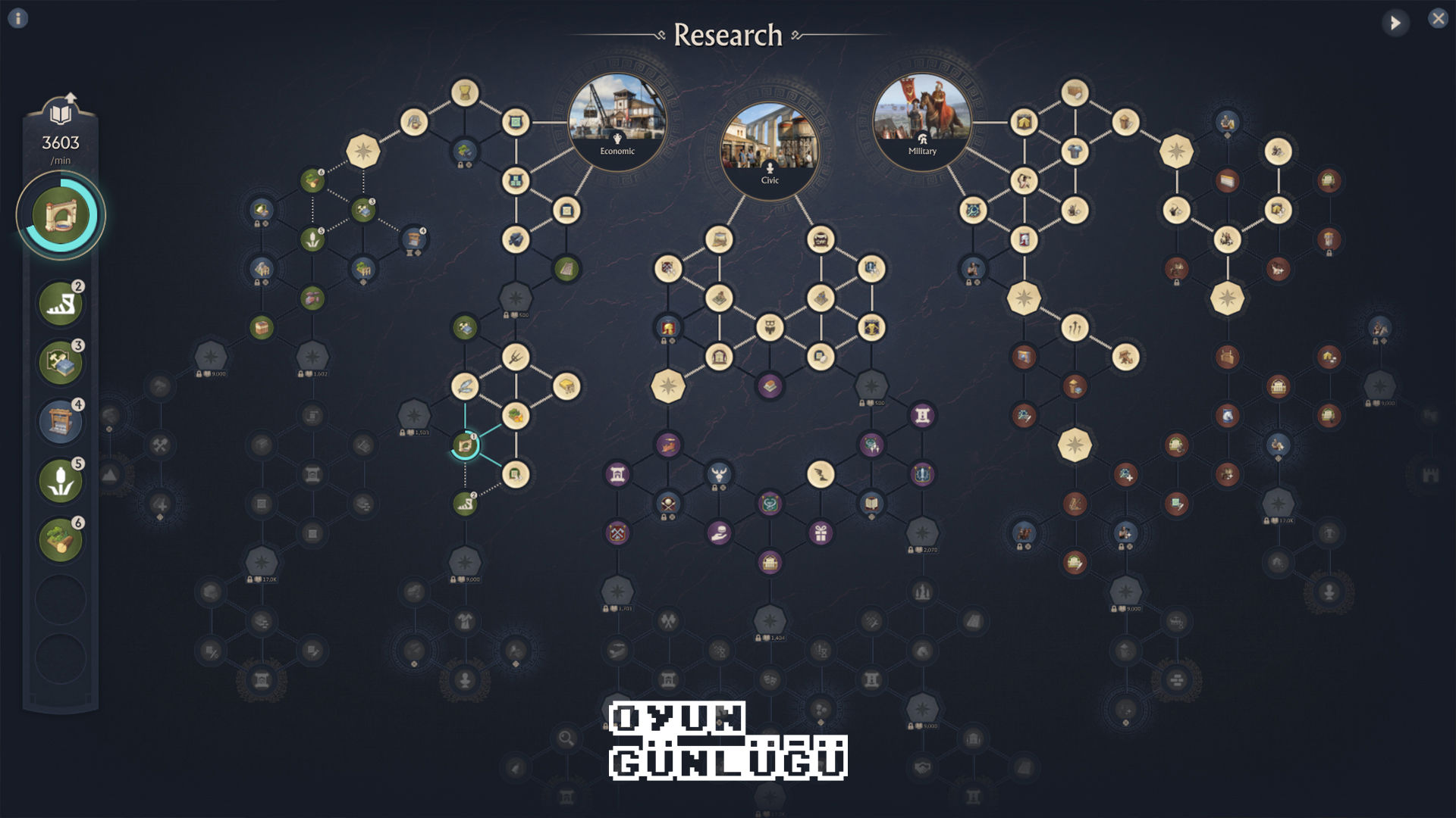Araştırma ağacı ve din sisteminin 'hadi bunu da ekleyelim' diye eklenen mekanikler olmadığı oldukça açık. Araştırma ağacı ile yeni ticari, sivil ve askeri yapılar yapabilir, ek özellikler elde edebilirsiniz. Örneğin taş yollar, yangınlara karşı kuyu, halk tuvaletleri, yeni savaş gemisi ve askeri birimler, taş sur geliyor. Aynı zamanda her adanız için ayrı bir tanrı seçebilirsiniz. Bu çok tanrılı din sisteminde de her tanrının özel bir gücü mevcut. Askeri, sivil veya ticari noktalarda neye ihtiyaç duyuyorsanız stratejinize bağlı olarak bir seçim yapabilirsiniz. Burada da yeni dini yapılar belli bir takipçi sonrası açığa çıkıyor.