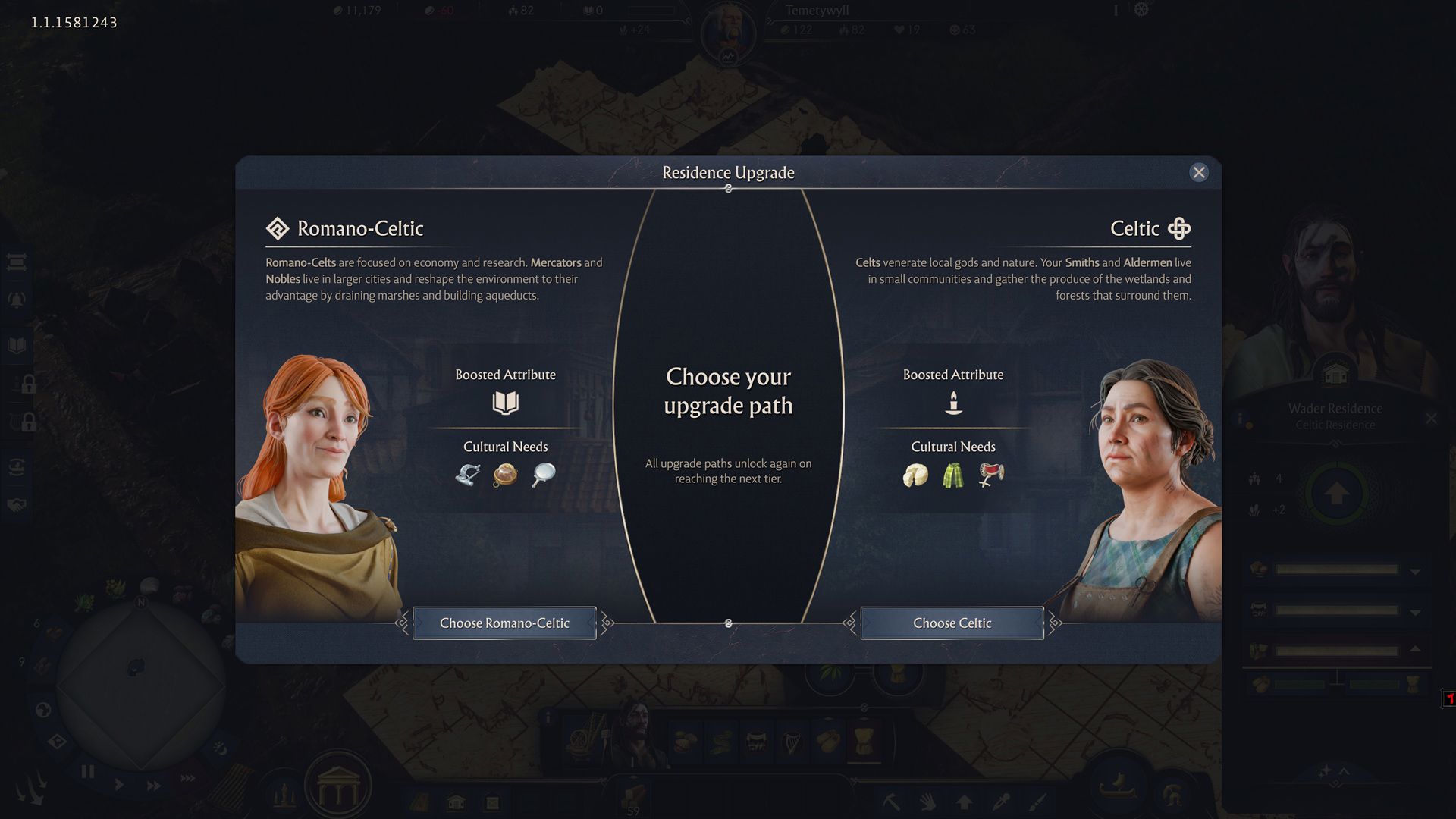 Oyun başlangıç bölgesini seçme gibi Anno tarihinde bir devrimsel hamle yapıldı. Burada da yine kaynak çeşitlilği ve toplum farklılıkları göze çarpıyor. Roma mimarisinin temel alındığı Latium, klasik Anno deneyimini sunuyor. Albion bölgesi ise Kelt toplumunun iki farklı dönüşümünü yaşıyor. Dilerseniz Romalılara benzeyebilir dilerseniz de Keltli olarak devam edebilirsiniz. Bu temel ayrım gelişen bölgenin ikinci kademe toplum yapısında karşımıza çıkıyor. Keltler dini tarafta bonuslar verirken Romalı Keltler bilim tarafında daha avantajlı. Talep edilen kaynaklarda bir o kadar farklı. Kelt bir aile peynir, cloaks (pelerin) ve chariot (savaş arabası) isterken, Romalı Kelt ise broşlar ve el aynası talep edebiliyor.