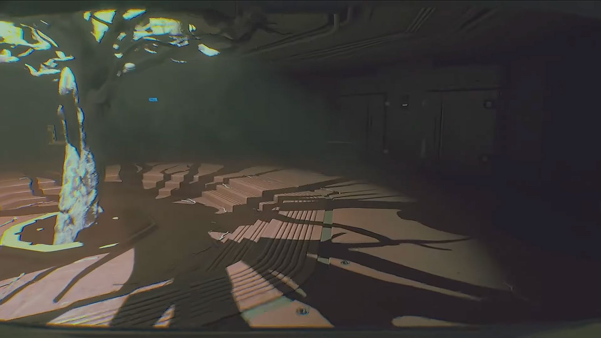 Ay üssü farklı bölümlere ayrılmış durumda. Union Plaza, 80’lerin alışveriş merkezi havasını birebir hissettiriyor. İçeride Megazone adında eski bir arcade salonu var; makinelerin çoğu bozuk, ekranları karıncalı. O’Neill’s Electronics’in karanlık raflarında dolaşırken el fenerinizin ışığı metal parçaların üzerinden kayıyor. Galaxy Video’nun kırık camlarından içeri baktığınızda ise titreyen neon ışıkları, buranın bir zamanlar gerçekten yaşayan bir yer olduğunu hatırlatıyor.Bir süre sonra tramvayla Living Quarters bölümüne geliyorsunuz. Burası oyunun en gergin bölümü. Karanlık koridorlar labirent gibi birbirine bağlanıyor. Saklanacak az yer var. Robotlar sürekli devriye geziyor. Daire komplekslerinde dolaşırken insanların aceleyle bırakıp gittiği eşyaları görüyorsunuz.