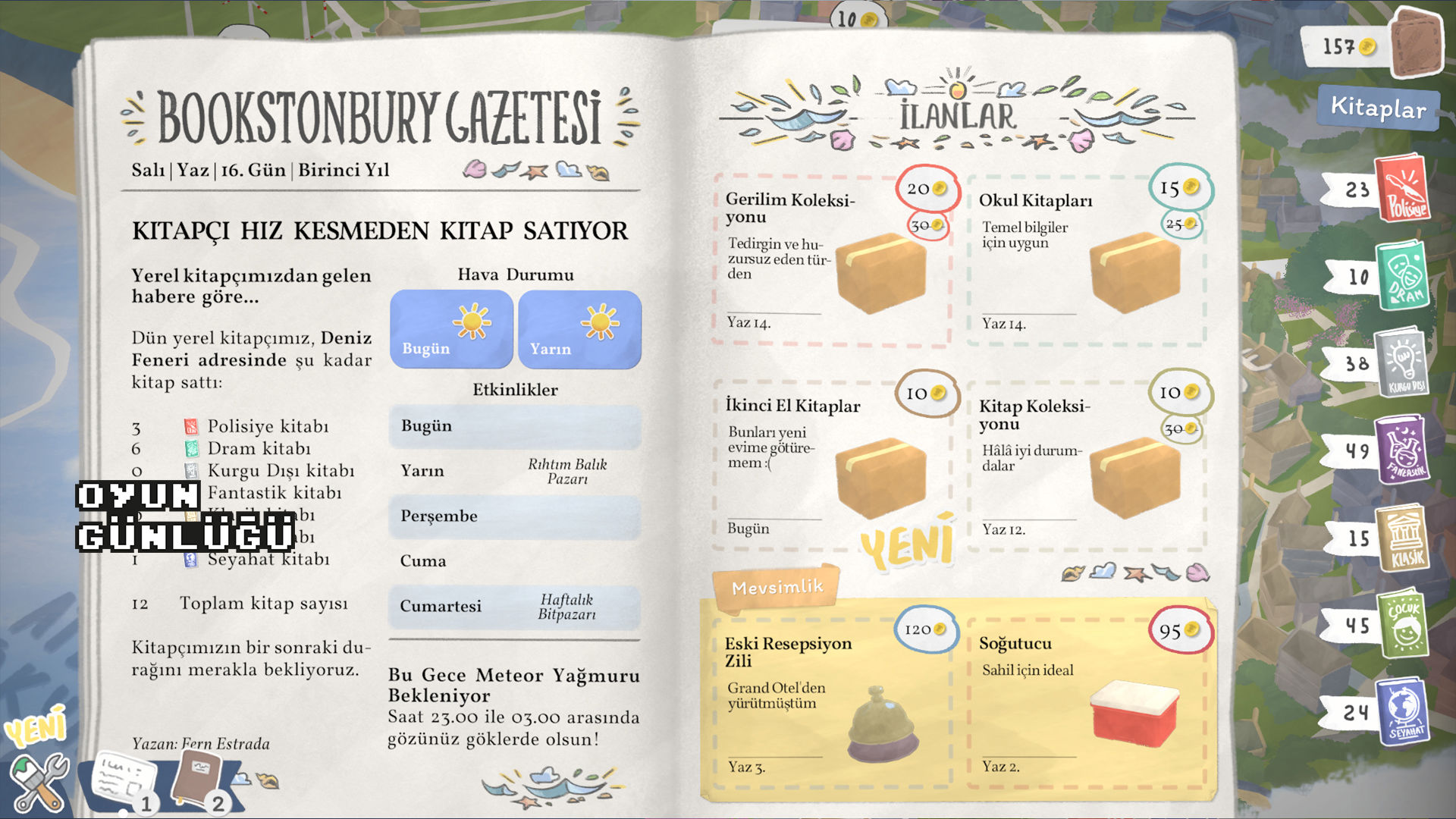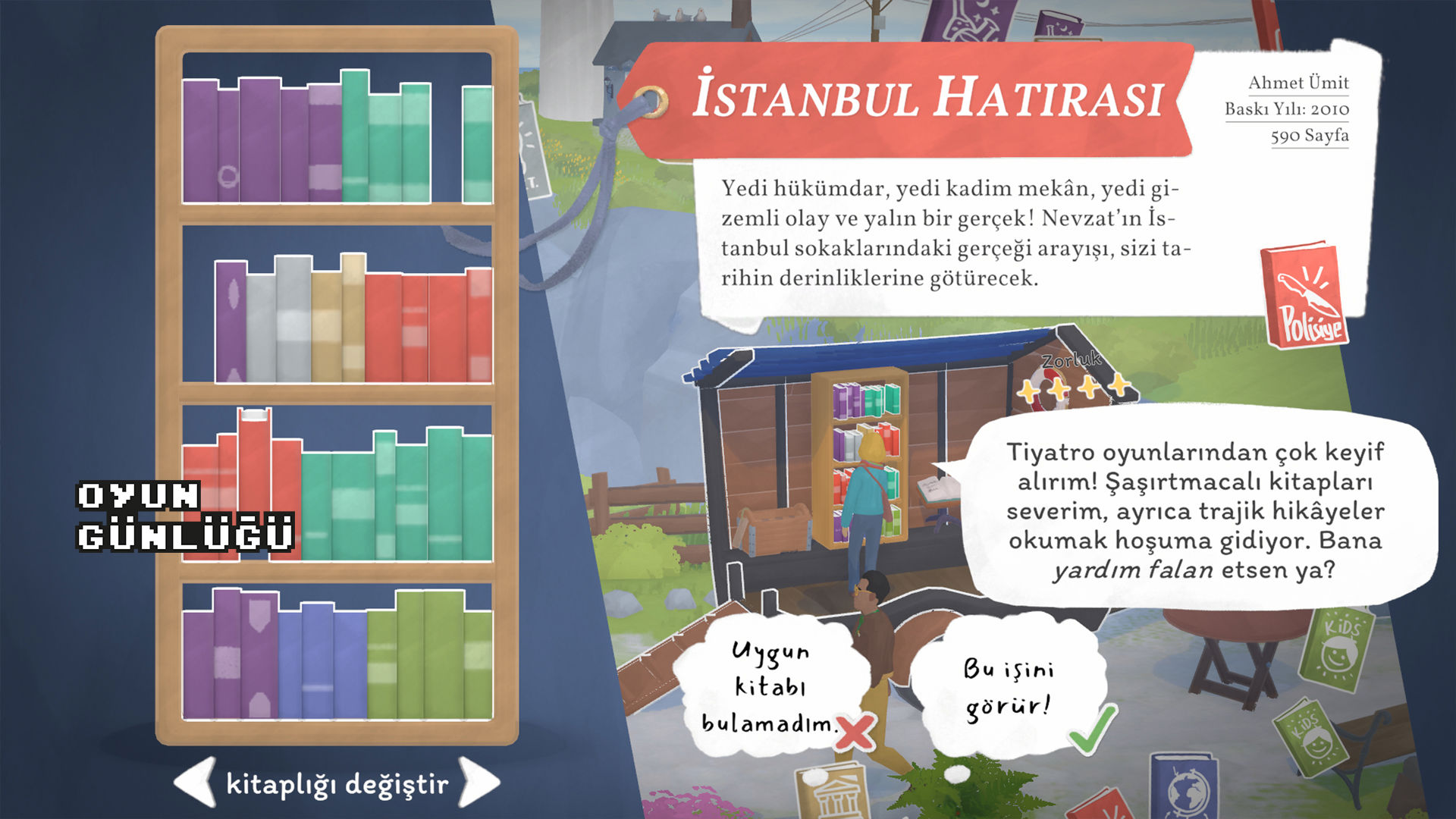 Lokasyonlar ise oyuna tatlı bir çeşitlilik katıyor. Her bölge, farklı bir müşteri profili çekiyor. Liman tarafında denizcilik kitapları daha çok satarken, park kenarında çocuk kitapları daha revaçta olabiliyor. Bu farkları öğrenmek, ilerleyen günlerde stok planlamanızı kolaylaştırıyor.
