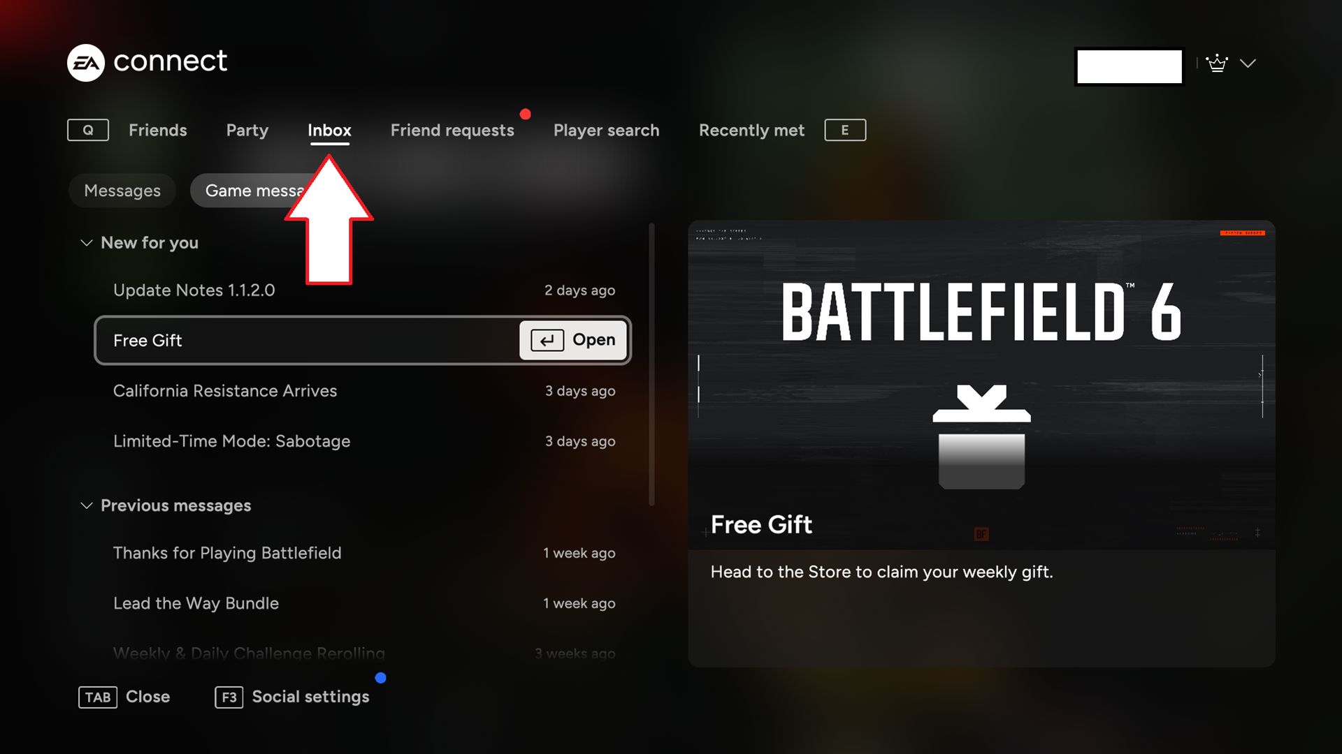 - Battlefield 6'yı açın ve Lobi'nin sağ tarafında bulunan 'Posta' simgesine tıklayın.