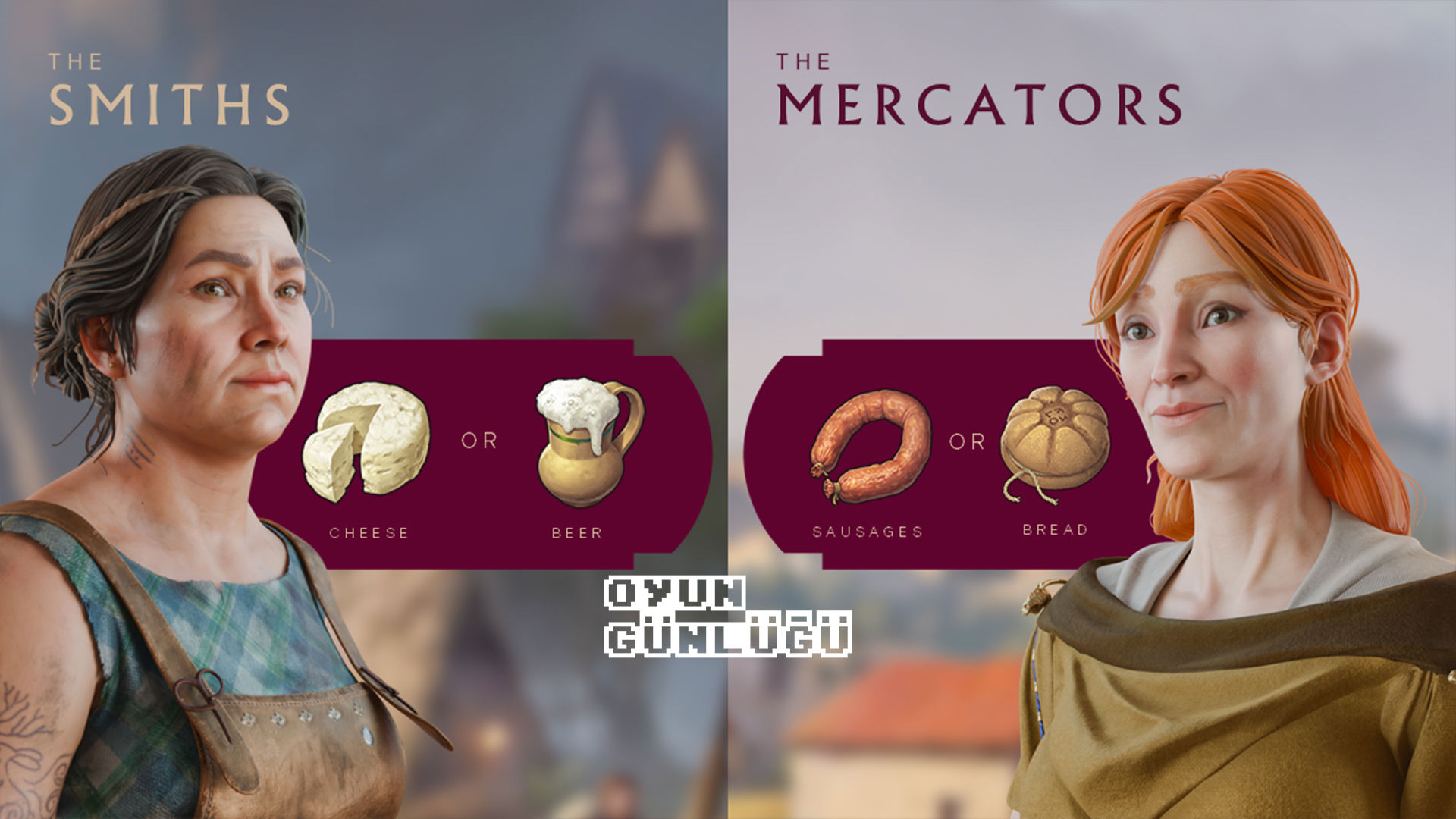Wader'larınızı Smith'lere yükseltin ve Kelt yolunda kalmalarını sağlayın - veya onları Mercator'lara yükseltin ve Roma kültürünün, modasının ve mimarisinin bazı yönlerini benimsemeye başlamalarını sağlayın.Smith'ler peynir ve bira isterken içki boynuzu da isterlerken, Mercator'lar sosis, ekmek ve gerçek Roma amforaları isterler.