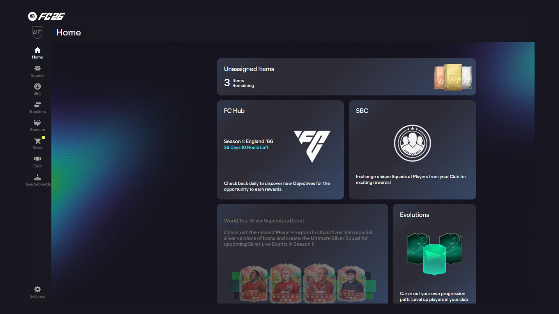 Uygulamayı açtığınızda doğrudan başlangıç ekranına gelirsiniz. Buradan takımınıza, SBC’lere ve oyuncu pazarına kolayca ulaşabilirsiniz.Hafta Sonu Ligi (Weekend League) mi oynamak istiyorsunuz? Ekranın altında puan takasıyla eleme hakkı kazanma seçeneği bile mevcut.