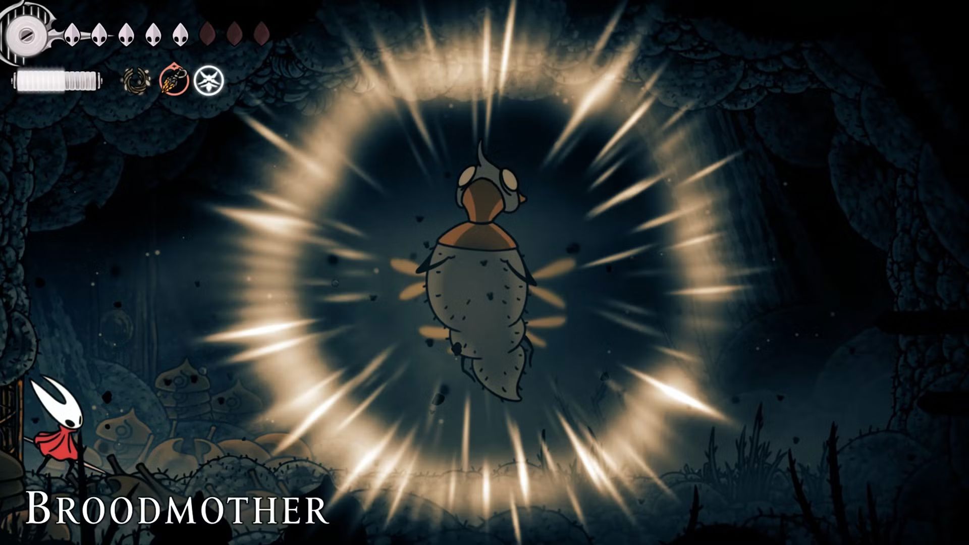 Slab bölgesinde karşılaşılan Broodmother, Hornet’in Grand Hunt görevlerinden birinde karşınıza çıkıyor ve savaş iki aşamalı ilerliyor. Bu boss’un her saldırısı iki maske hasar veriyor, bu yüzden hata payı oldukça düşük.