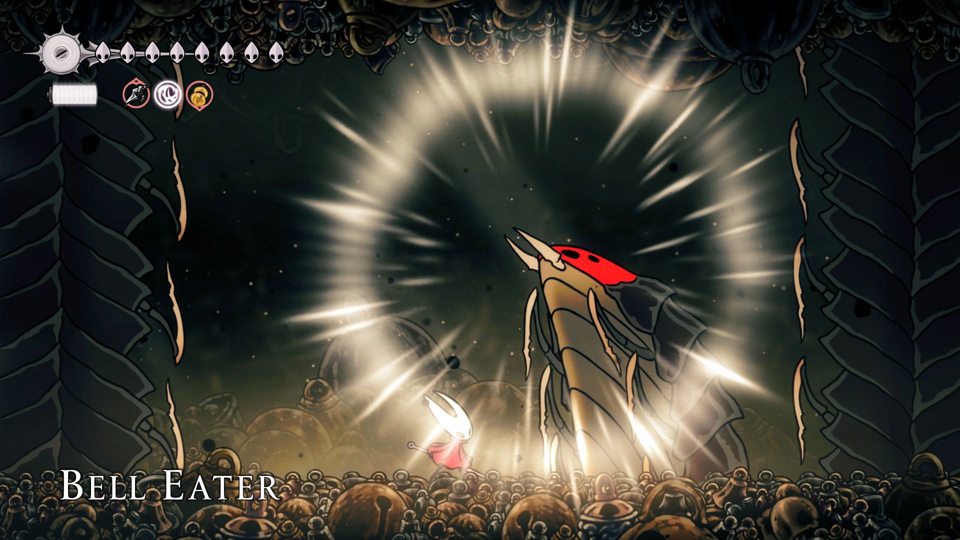 Bell Eater’ın en görkemli hamlesi Rain of Bells. Bedeni genişleyip spiral şeklinde tavan ya da zemin boyunca hareket ettiğinde arenaya çanlar yağmaya başlıyor. Eğer hareketi tavandan yapıyorsa yerde kalarak, yerden yapıyorsa çift zıplayarak gelen çanlardan kaçmak gerekiyor. Bu sahne hem görsel olarak dikkat çekici hem de oyuncunun reflekslerini en çok sınayan anlardan biri.