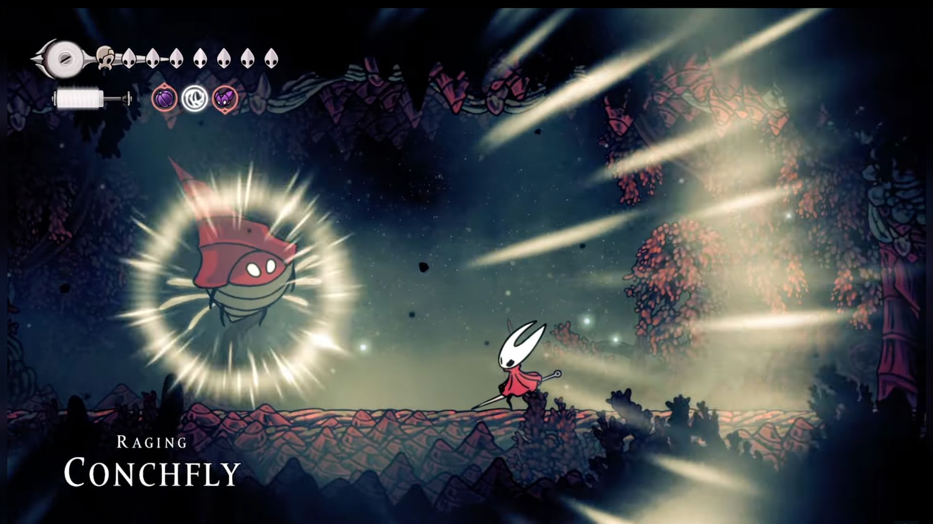 Dövüş temposu yüksek ve hata payı dar. En baskın hamle Drill Attack: tavandan matkap gibi aşağı iniyor, arenayı delip karşı tarafta ters dönmüş halde yeniden beliriyor. Oyuncu güvenli bir taraf seçip ilk dalışı yana kaçarak atlatmalı; Conchfly tam gömülmeden birkaç hızlı Needle darbesi çıkarılabilir. Ardından yeniden yüzeye çıkacağı noktayı steam belirlediği için ikinci kaçışa hazırlıklı olmak şart; çıkıştan hemen sonra bir cezalandırma penceresi daha doğuyor.