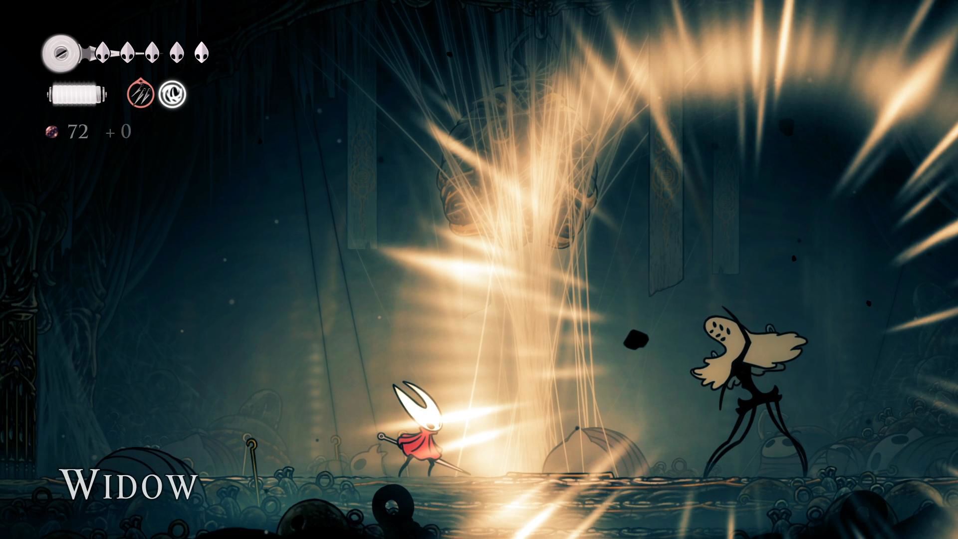 Widow, Bellhart'ta bulunan bir boss ve ona ulaşabilmek için öncelikle Cling Grip yeteneğini elde etmeniz gerekiyor zira bu yetenek, boss odasına giden yolu geçmenizi sağlıyor.