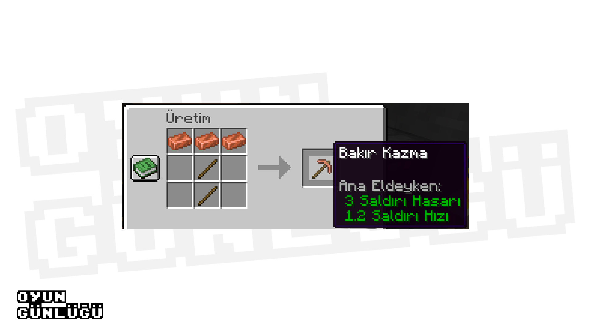 İşte Minecraft’ta bakır kazma için gerekli malzemeler: