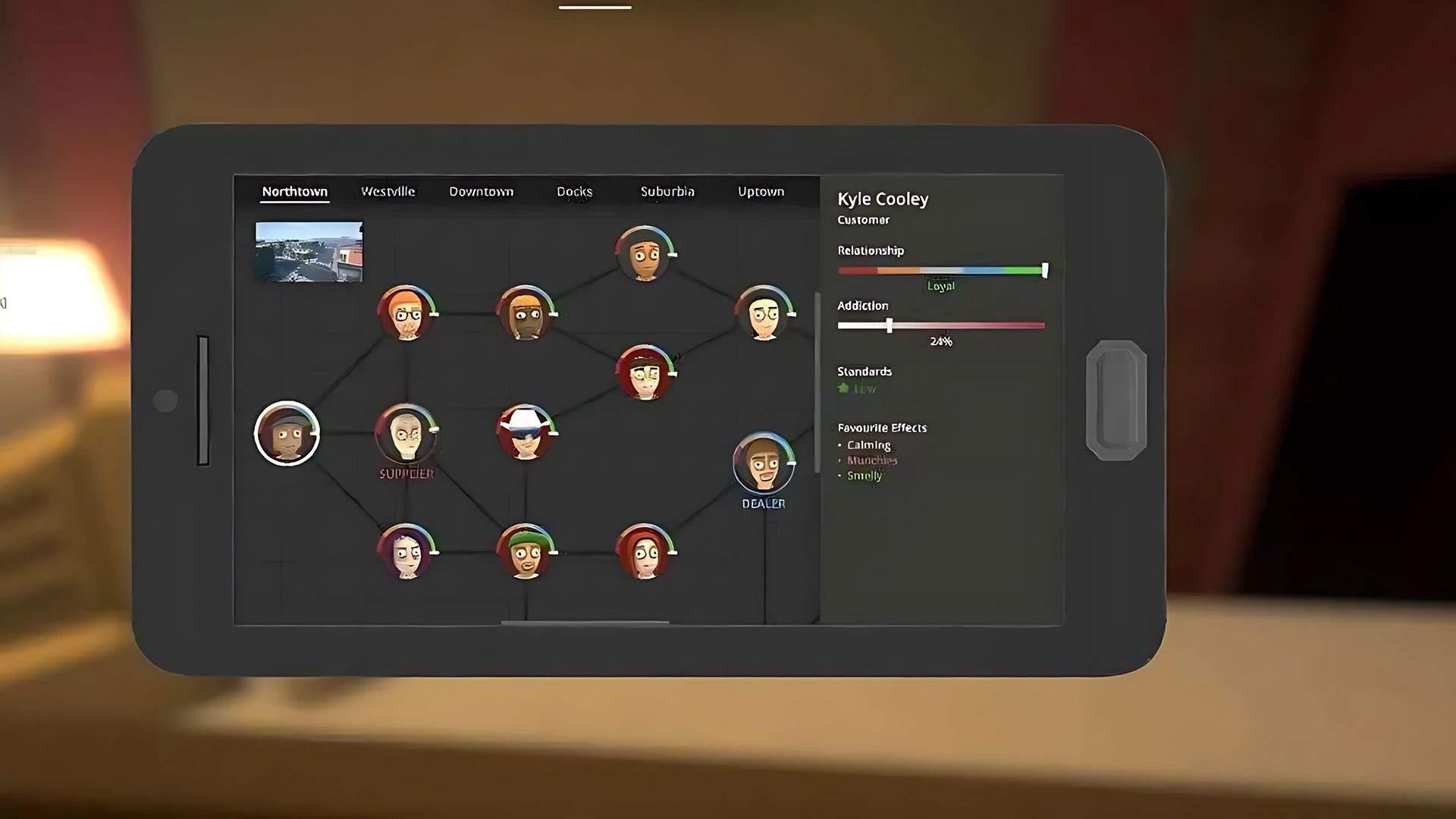- Sam Thompson (Low): Munchies, Athletic, Smelly → Methamphetamine müşterisi, Cocaine sevmez.
